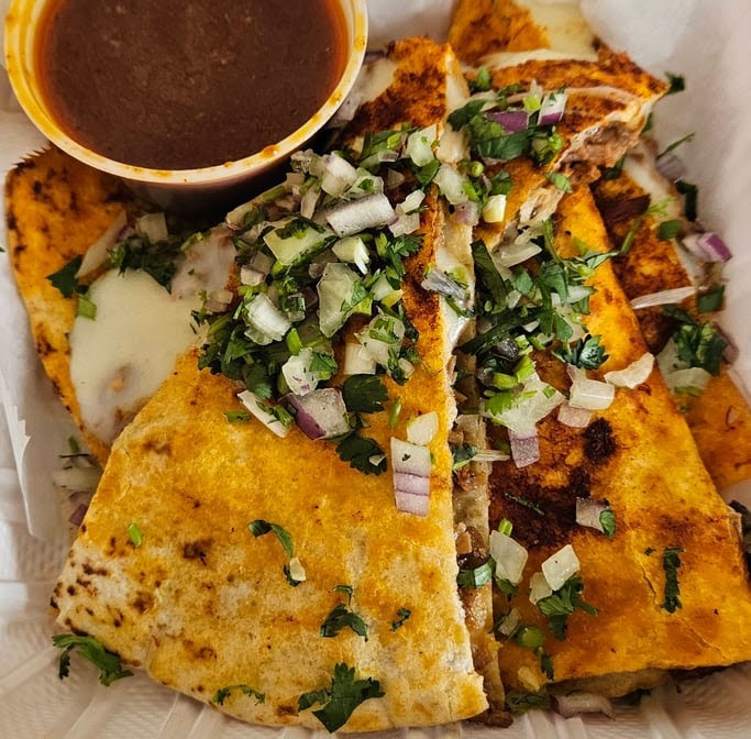With a choice of meat ( chorizo, pastor, carnitas ,milanesa de pollo