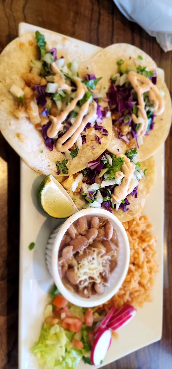 3 made to order crispy taquitos filled with chicken and cheese topped with beans,lettuce,tomato queso fresco and a touch of crema